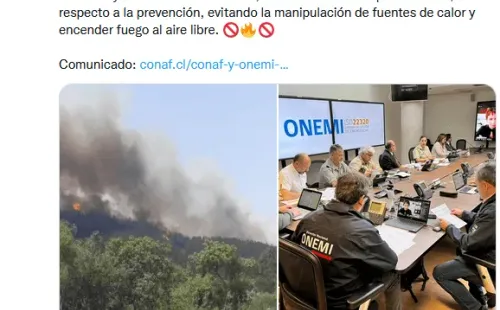 Ante la gravedad de los incendios y la rápida propagación que ya dejó 30 viviendas quemadas en Monte Patria, cuarta región; la Ministra del Interior, Carolina Tohá convocó una mesa técnica en respuesta al fulminante avance de los incendios forestales que azotan a Chile.