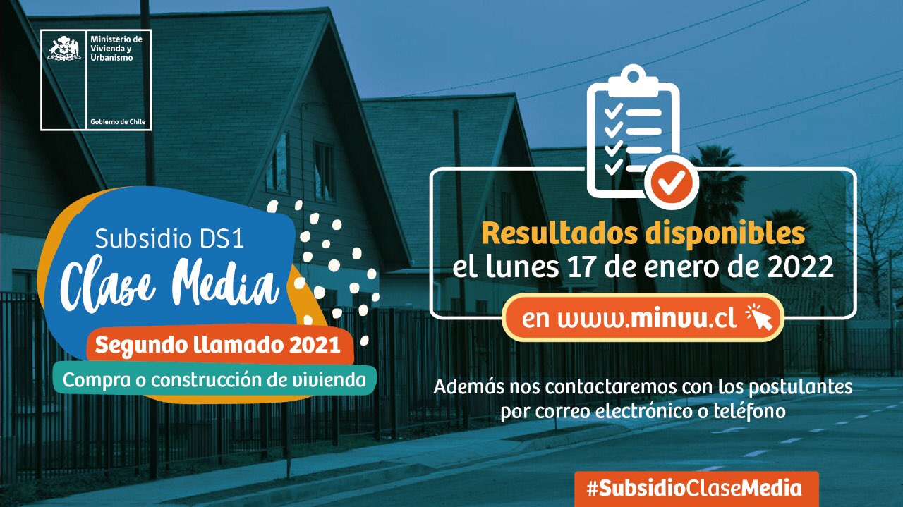 El Ministerio de Vivienda y Urbanismo (MINVU) anunció que publicará los resultados del Subsidio Clase Media DS1 2021, este lunes 17 de enero INGRESANDO AQUÍ.