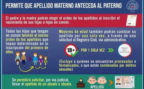 Este martes entró en vigencia la Ley que permite cambiar el orden de los apellidos y llevar en primer lugar el apellido materno en el registro de cada persona.
