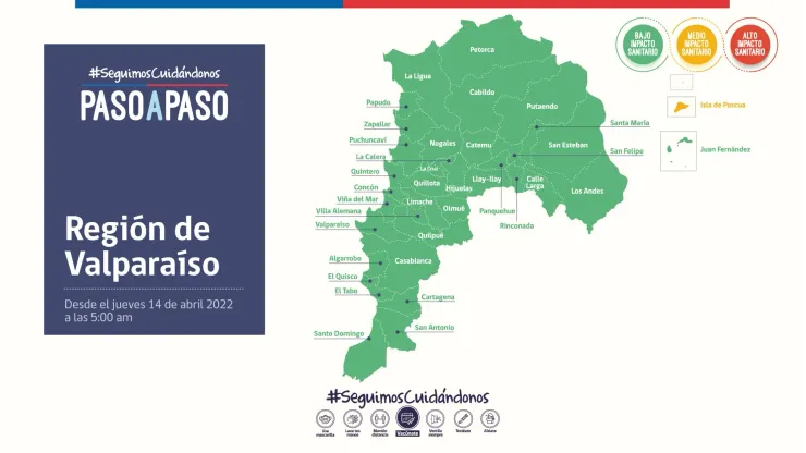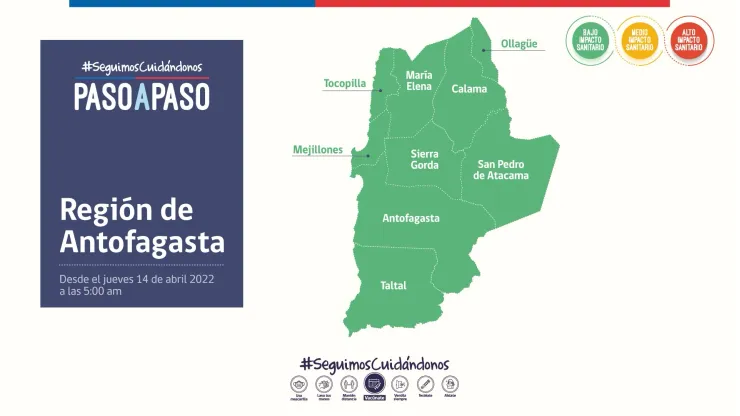 Bajo el mismo contexto las autoridades realizaron un detalle del nuevo “Seguimos Cuidándonos Paso a Paso”, el cual comienza a regir desde este jueves 14 de abril, es por esto que se realizaron nuevos cambios comunales que rigen desde la misma jornada bajo las nuevas fases.