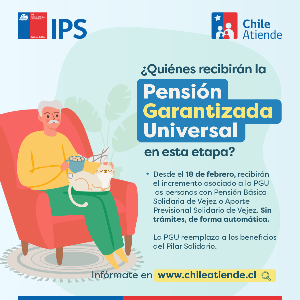 La PGU se entregará a personas con 65 años cumplidos, sea que reciban o no beneficios del Sistema de Pilar Solidario (SPS), o que aún no se encuentren pensionados.
