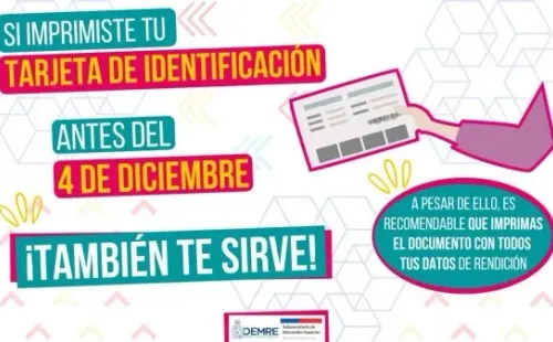 Según lo informado por el Demre: “Sino alcanzas a imprimir tu Tarjeta de Identificación con todos los datos de rendición, pero tienes impresa una anterior, esa también te sirve. Te recomendamos que imprimas la última versión”.
