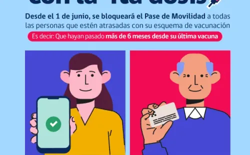 Las autoridades del Ministerio de Salud, anunciaron que “Desde el 1 de junio, se bloqueará el Pase de Movilidad a todas las personas que estén atrasadas con su esquema de vacunación, es decir, que hayan pasado más de 6 meses desde su última vacuna”.