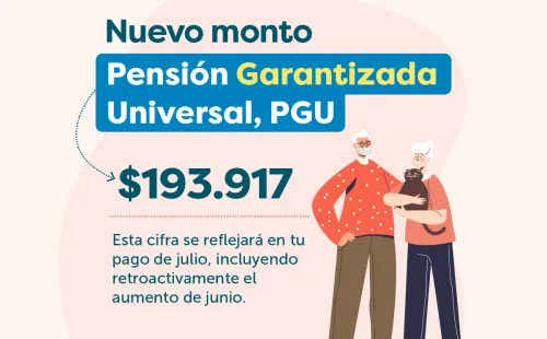 La Pensión Garantizada Universal es entregada por el Gobierno de Chile, en reemplazo alPilar Solidario de Vejez (Pensión Básica Solidaria-Aporte Previsional Solidario) con un monto de $185.000 pesos mensuales, el cual cambiará desde el actual mes de julio.
