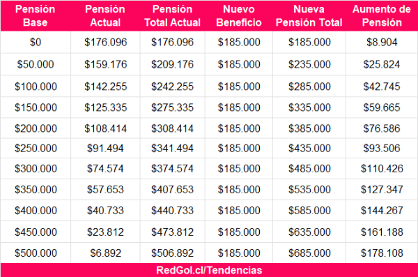 – 80% más vulnerable: Aquellos que tengan una pensión base menor o igual a $630.000, recibirán el monto máximo de $185.000.