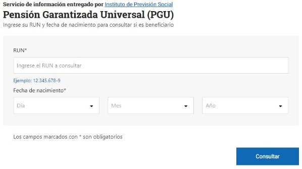 Escribe tu RUT, selecciona tu fecha de nacimiento y haz clic en “Consultar”