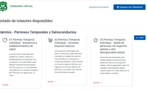 4. Aquí, se entrega la opción de ingresar con la cédula, conClave Únicao para extranjeros. También ofrece información del permiso, como su duración y cuántas veces se puede pedir.