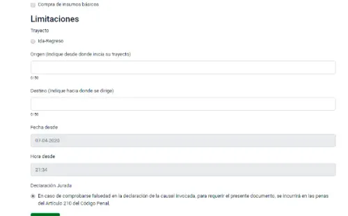 5.Tras ingresar los datos del paso anterior, el sistema pedirá que se corrobore la dirección de la persona. En algunoscasos, pedirá adjuntarun documento que compruebe la solicitud. Además de esto, pide ingresar el lugar de destino, la hora, o si se requiere acompañante.
