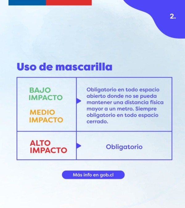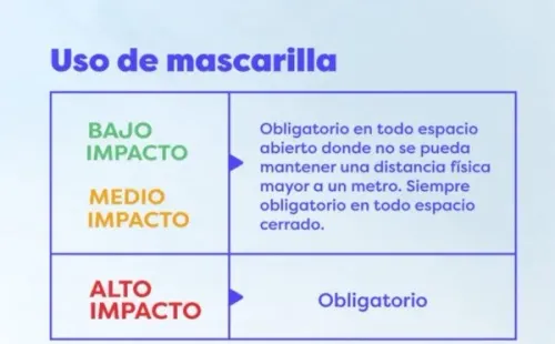 Este plan el que modifica el uso de la mascarillaobligatorio en Chile por lo que, las personas podránnousarla en espacios abiertos bajo un determinado contexto ynuevas etapas que las personas deberán respetar, contemplando tres fases entre las que la población avanzará o retrocederá de acuerdo a la situación sanitaria.
