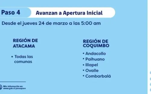 Apartir de hoy jueves 24 de marzo a las 5:00 am las siguientes comunas cambiaron de fase: