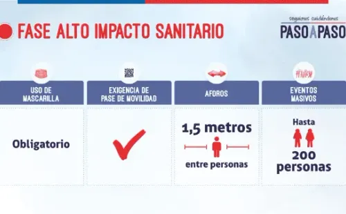 - En espacios cerrados las personas deberán mantener distancia física de al menos 1 metro y el pase de movilidad será obligatorio.
