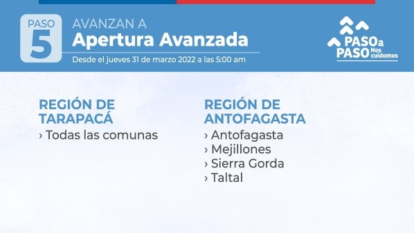 Así mismose informaron de nuevos cambios comunales, que esta vez solo serán avances y son 11 lascomunas que pasarán este jueves 31 de marzoa Fase5del Plan Paso a Paso. A continuación, te contamos los detalles.