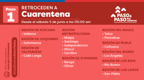 Retroce Cuarentena: Vallenar, Slamanca, Calle Larga, Maipú, Santiago, Independecia, Macul, Cerrillos, Rengo, Olivar, Talca, Pencahue, Coihueco, Los Ángeles, Río Bueno y San Pablo
