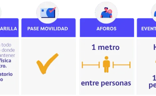 - En espacios cerrados las personas deberán mantener distancia física de al menos 1 metro y el Pase de Movilidad será obligatorio.