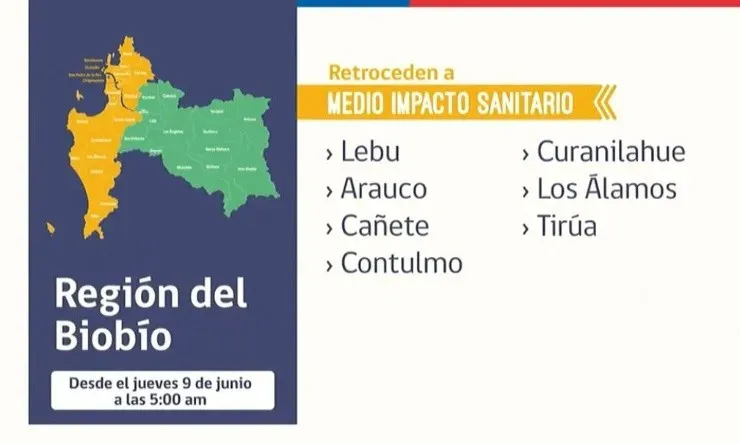 Así mismose informaron denuevos cambios comunales,que esta vezsoloserán retrocesos con 15 comunas que estarán desde este jueves 9de junioenFasede MedioImpacto SanitariodelNuevo Plan Paso a Paso. A continuación, te contamos los detalles.
