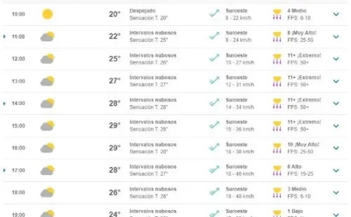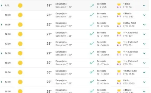Se espera llegar a los 25º a eso de las 12.00 horas, momento en que el índice UV será extremo, por lo que es muy recomendable usar protección solar.