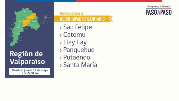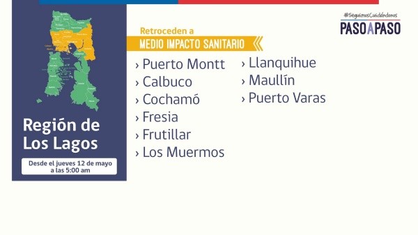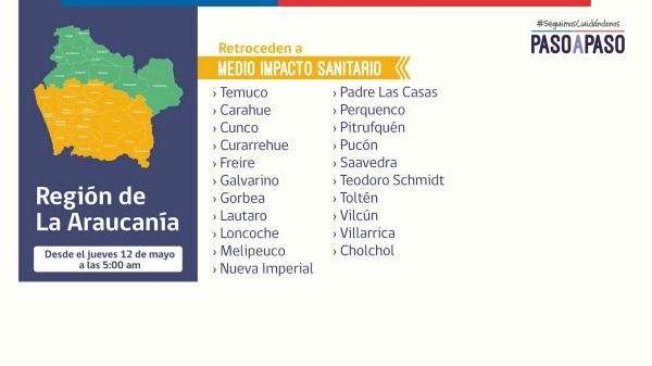 En específico, todas las comunas correspondientes retrocederán de la fase Bajo Impacto Sanitario a la de Medio Impacto Sanitario.
