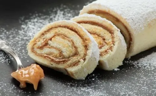 Luego debes desenrollar y rellenar con el manjar y volver enrollar. Después espolvorea con azúcar flor (azúcar glas)