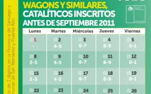 También rige esta medida paralos vehículos con sello verde, inscritos antes del 1 de septiembre del año 2011 ymotos inscritas antes del 1 de septiembre del año 2010.