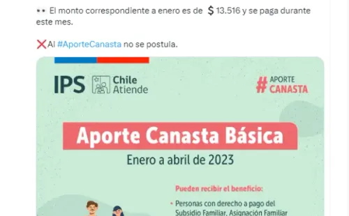 El monto de febrero del Bono Canasta Básica corresponde a$14.170 por causante familiar, pero como el beneficio se paga de manera retroactiva, este mes recibirán el monto de enero que es $13.516.