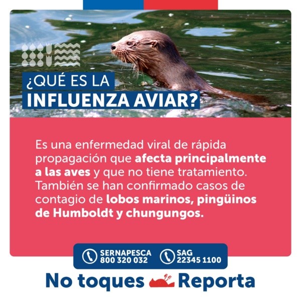 Y agregó que, en caso de encontrar un ave o animal fallecido, se debe dar aviso inmediato a Sernapesca o al SAG.