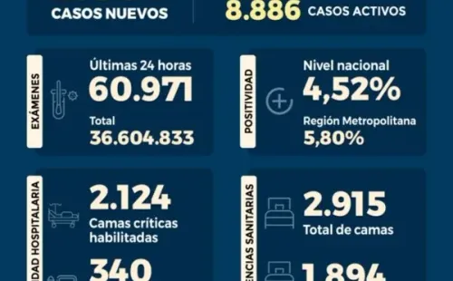De esta manera, lapositividad a nivel nacional es de4,52%con60.971exámenes, PCR y test de antígeno realizados. Mientras que en la Región Metropolitana la positividad alcanza un5,8%.