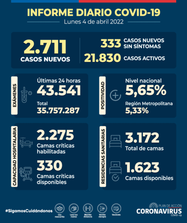 ¿Cuántos casos de Covid-19 hay este lunes 4de abril en Chile?