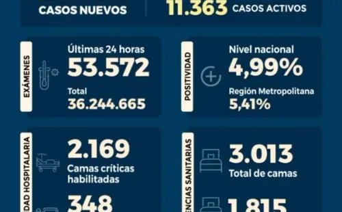 De esta manera, la positividad a nivel nacional es de4,99% con 53.572 exámenes, PCR y test de antígeno, mientras que en laRegión Metropolitana alcanza un 5,41%.