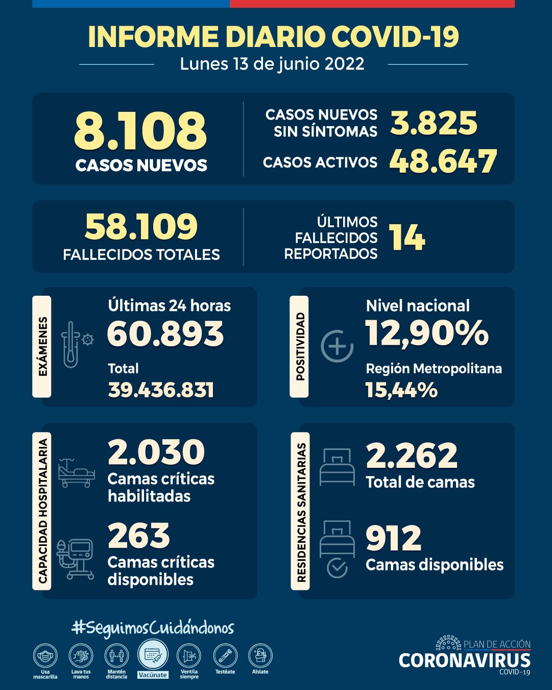 ¿Cuántos casos de Covid-19 hay este lunes 13 de junio en Chile?