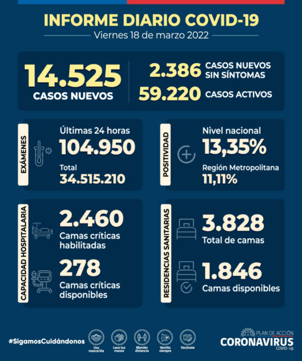 ¿Cuántos casos de Covid-19 hay este viernes 18de marzoen Chile?