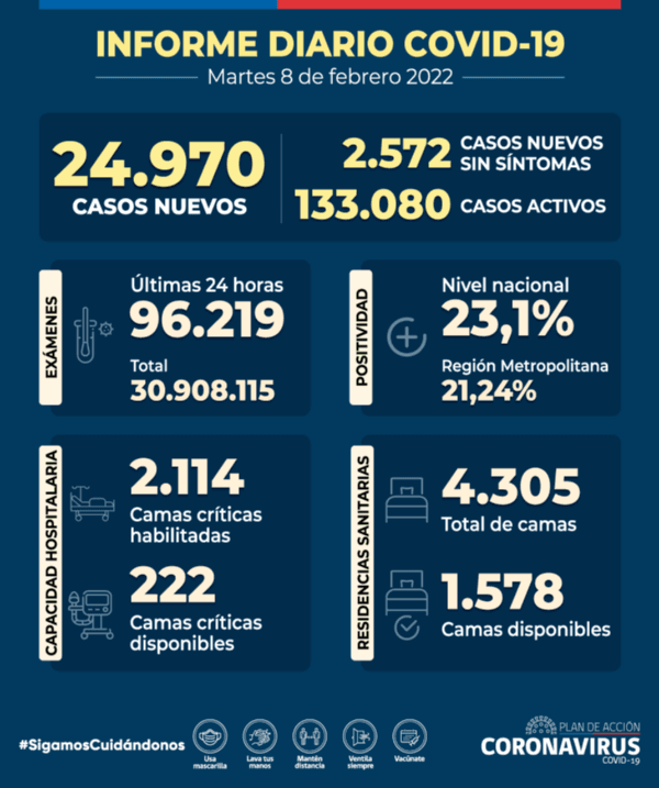 ¿Cuántos casos de Covid hay este 8de febrero en Chile?