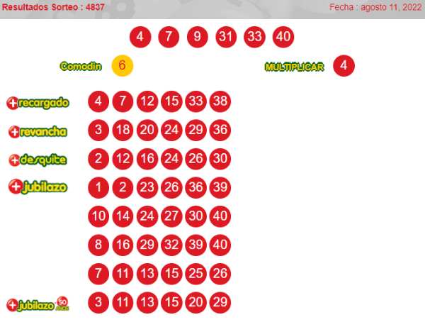 A continuación,te invitamos a conocer los números ganadores delsorteo número 4837.