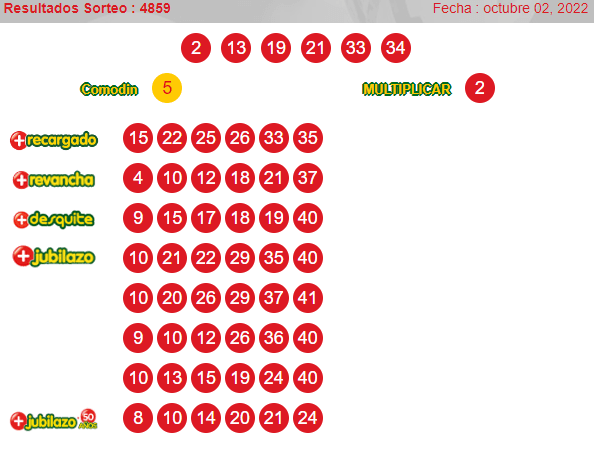 Resultados del Loto:Números ganadores sorteo 4859 domingo 2 de octubre