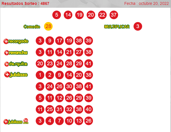Resultados del Loto:Números ganadores sorteo 4867jueves 20de octubre