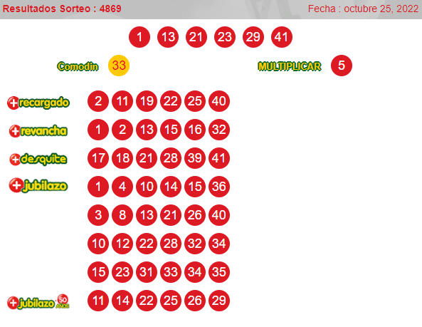 Resultados del Loto:Números ganadores sorteo 4869 martes 25 de octubre