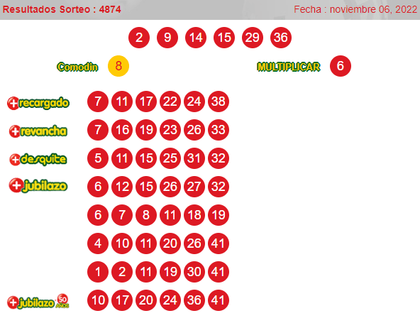 Números ganadores del loto 4874 domingo 6de noviembre