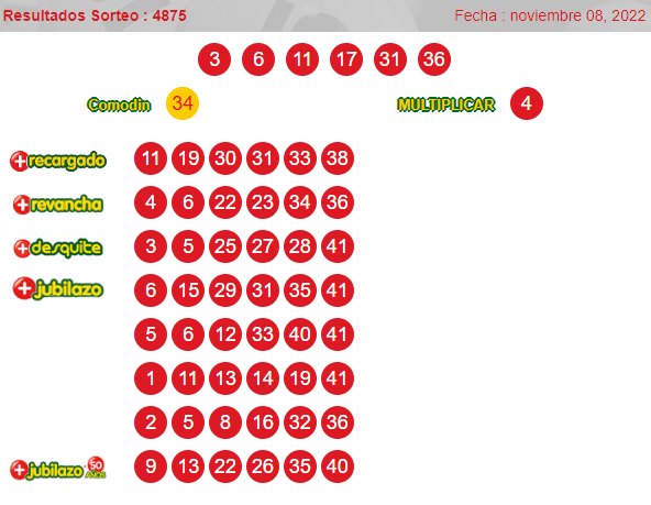 Números ganadores del loto 4875 martes 8de noviembre