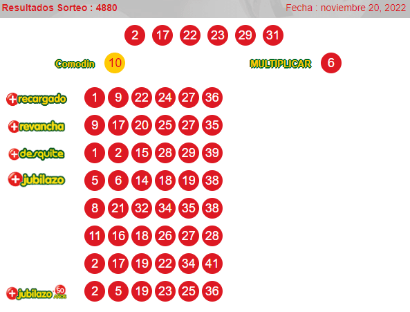 Números ganadores del loto 4880 domingo20 de noviembre