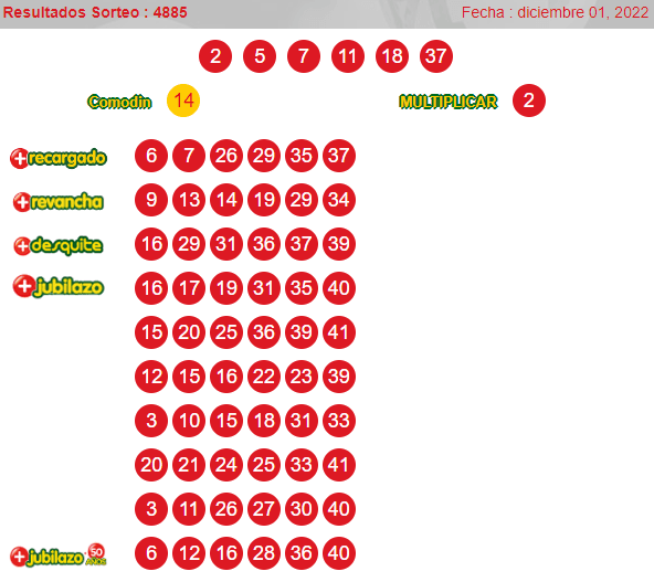 Números ganadores del loto 4885 jueves 1 de diciembre