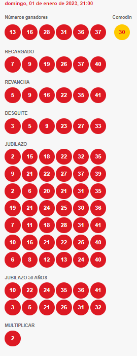 Números ganadores del loto 4898 domingo 1 de enero