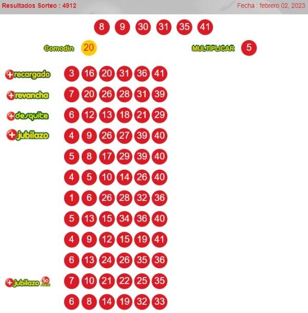 Números ganadores del loto 4912 jueves 2de febrero