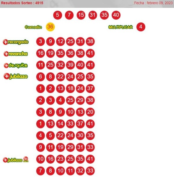 Números ganadores del loto 4915 jueves 9 de febrero