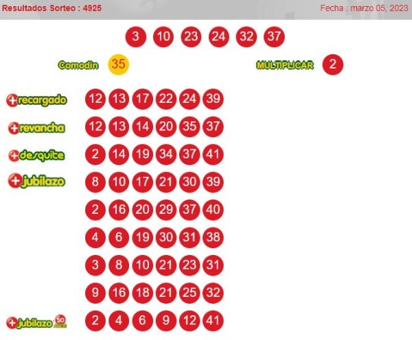 Números ganadores del loto 4925 domingo 5 de marzo