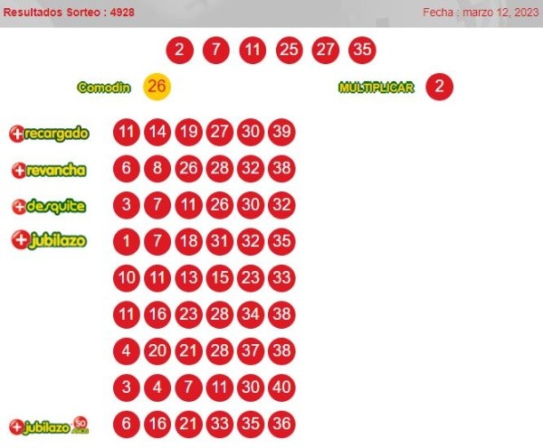 Números ganadores del loto 4928 domingo 12de marzo
