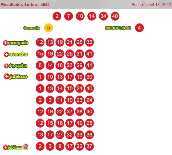 Números ganadores del loto 4944martes 18 de abril