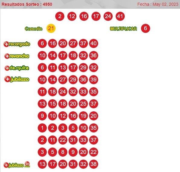 Números ganadores del loto 4950 martes 2 de mayo