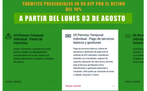 Desde este lunes 3 de agosto se podrá requerir el retiro del 10% de la AFP de manera presencial.
