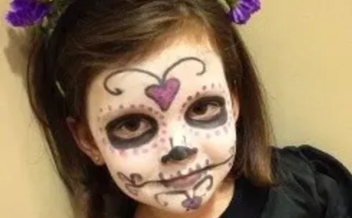 Para poder hacer un maquillaje de calavera necesitarás pintura de cara blanca y negra, puedes buscar fotos de referencia al momento de realizar el dibujo en la cara de los niños.