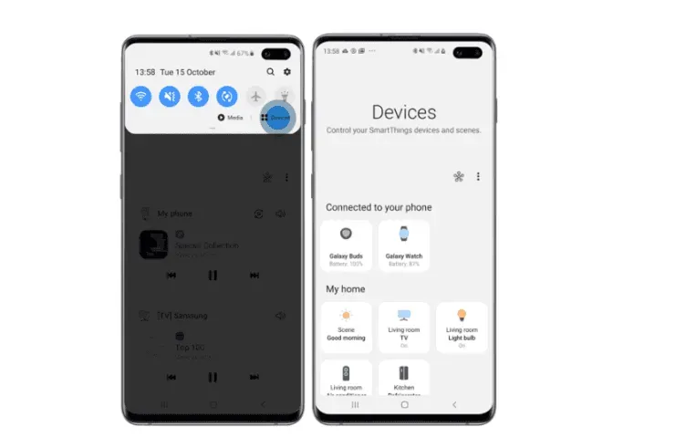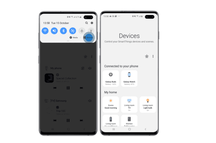 Descubrir nuevas canciones, películas o programas de TV también es más fácil con la búsqueda mejorada del dispositivo, que muestra recomendaciones de contenido de aplicaciones multimedia. Al añadir Medios y dispositivos al Panel rápido, se puede controlar fácilmente la experiencia multimedia de varios dispositivos solo con el Galaxy S10.