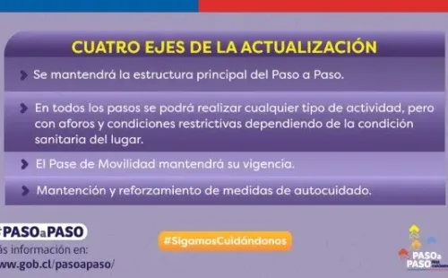 La medida también repercute directamente en el Plan Paso a Paso, donde se modificarán las etapas de la estrategia sanitaria que rige en Chile. Así es como las nuevas fases serán: Restricción, Transición, Preparación, Apertura inicial y Apertura avanzada.